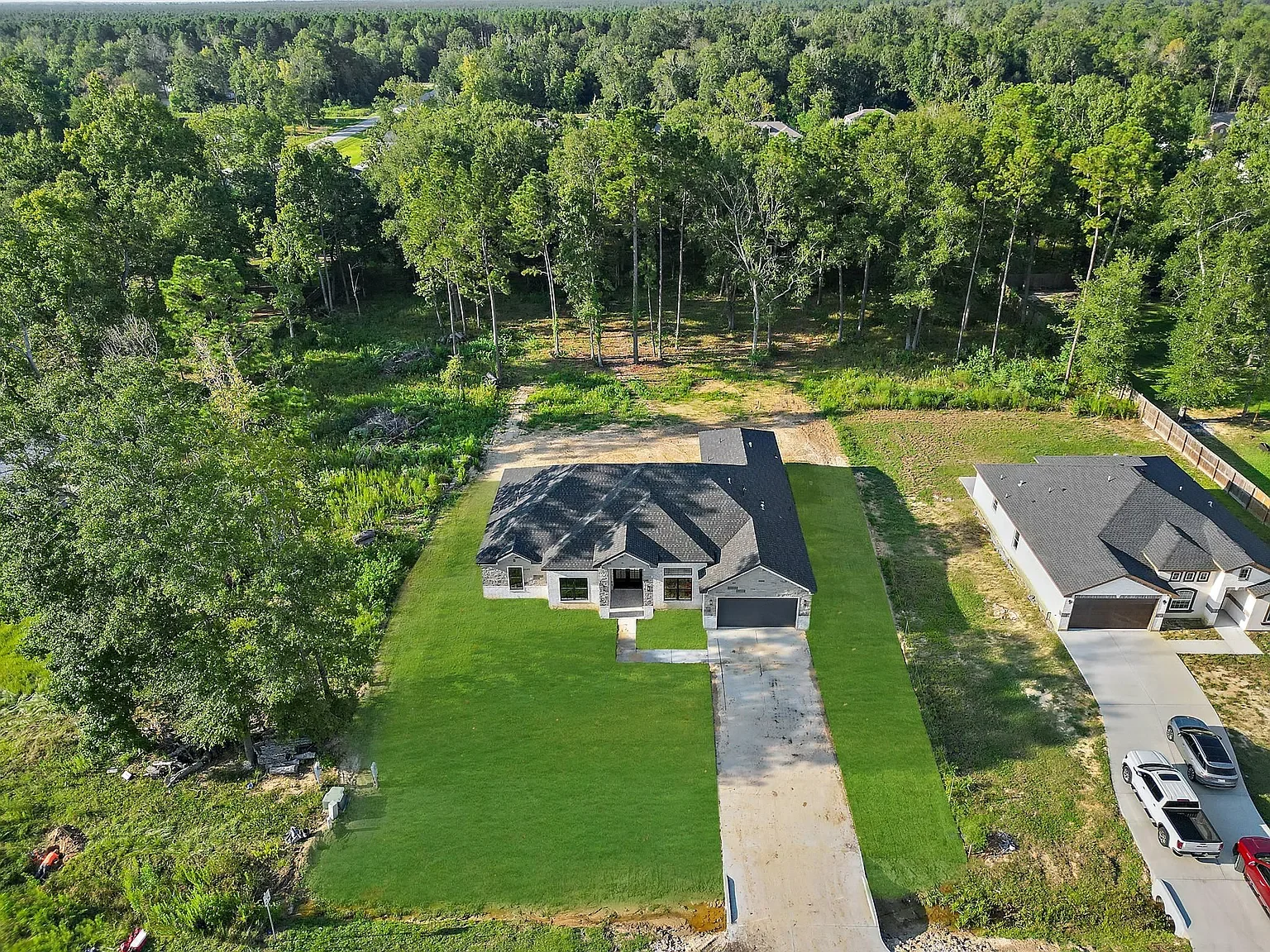Beautiful newly built home situated on a spacious lot surrounded by mature trees, offering both privacy and peaceful surroundings. This modern home features an elegant brick and stone exterior, a welcoming covered entry, and a two-car garage. Large windows provide plenty of natural light while the open layout creates a comfortable and functional living space. The expansive yard offers plenty of room for outdoor living and enjoying the natural setting. 🏡